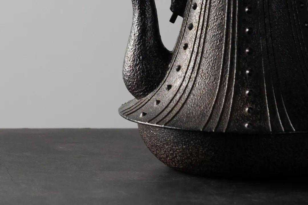 经由失蜡法所铸制的铁壶,通体无浇筑孔无腰线,呈现侘寂美学中的【荒肌】质感。