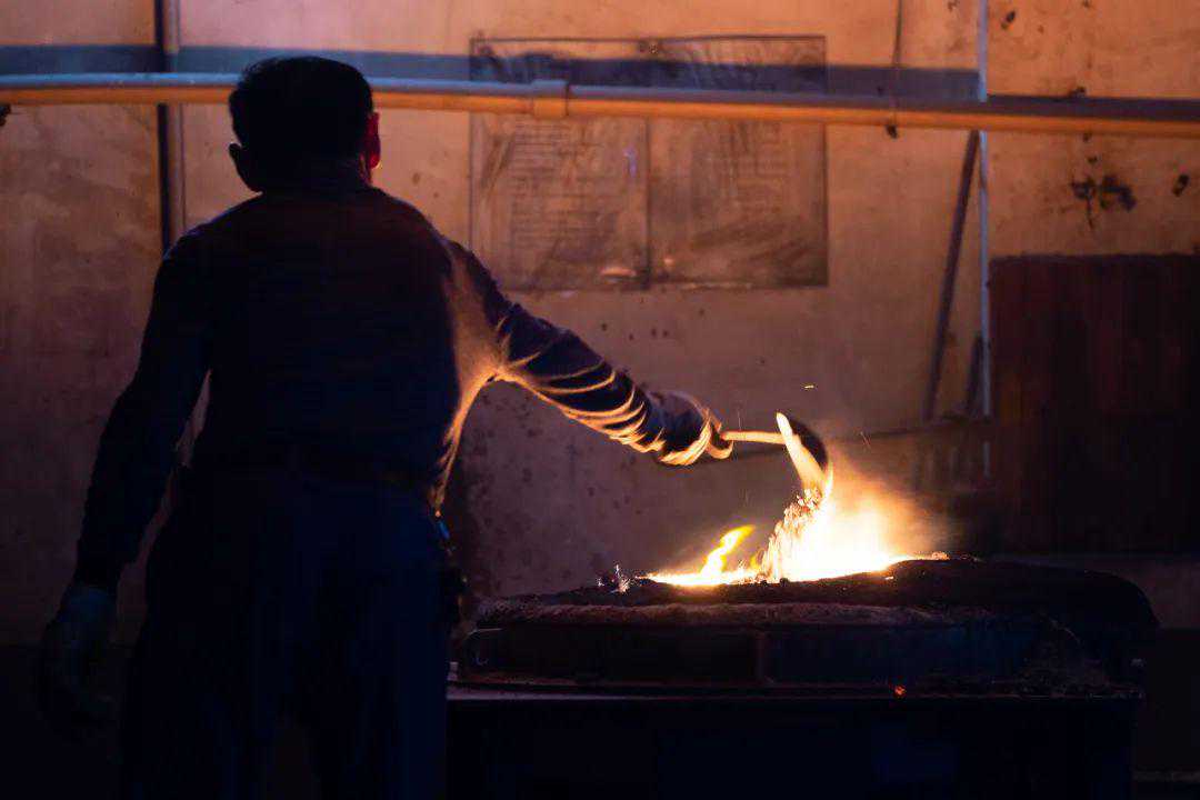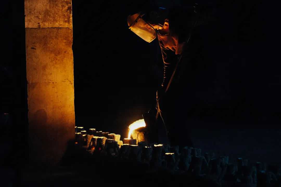 在每一场铁壶的铸造之前,将有年长的釜师主持祭祀活动,向熔炼的铁水中掷入钱币以求得神明庇佑。而本场铁壶,在之前众筹场次的基础之上,在材质上做了进一步的优化,提高了砂铁的含量,使得铁壶更不易生锈。