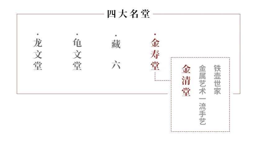 【金清堂】与四大名堂的铁壶铸造世家【金寿堂】一脉同源。