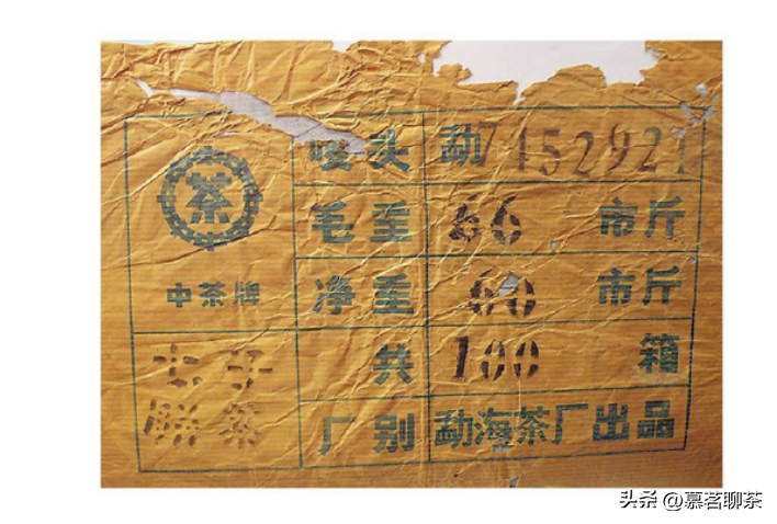 唛号大部分是1975年以后的事情,现在市场上还是有人会去购买文革砖,小编只想阐述一个事实,1975年以前云南还没有正式生产普洱熟砖,因为熟茶工艺还没有定型,生砖的生产主力是下关茶厂、昆明茶厂,勐海茶厂辅助。按照1966-1976年的“文革”十年来算,之后几年市场上有可能有文革砖,但是文革砖应该大部分都属于边销砖,也就是生砖。即便是1975年以后的熟砖,产量极少,很多出口到了香港很快就被消耗掉了,能留到今天的可能性很小。再说一个常识,邹炳良回忆“边销砖用料不仅非常杂,还很粗老。一般选择7-8级甚至一些茶梗,碎茶来拼配压制。即便是2005年下关宝焰砖,也是用牛皮纸四片一捆包装,一公斤一捆,是没有单片独立包装的。