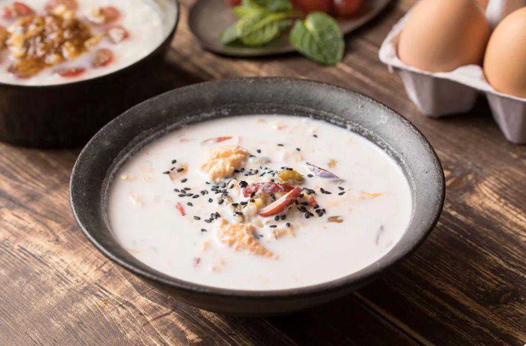 再配上醪糟、鸡蛋、黑芝麻、葡萄干等,一支铜锅、一把铜勺,把这些巧妙调和。奶香四溢中带着滑嫩,丰富口感中带着微酸,营养又十分丰富,简直是完美糖水。
