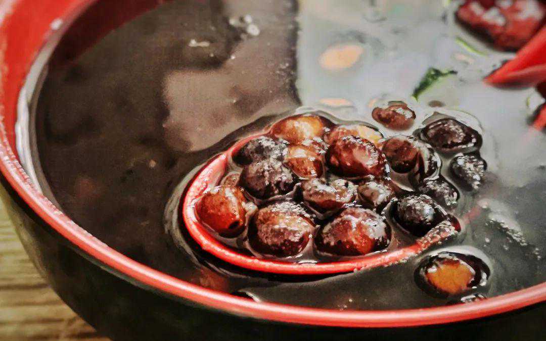 灰豆汤又叫灰豆子,因为所用的麻豌豆颜色暗灰以及使用到了蓬灰而得名。灰豆和红枣,白糖一起熬煮成质地浓稠的“粥”,豆子煮得要烂不烂,保持外绵内沙的口感。