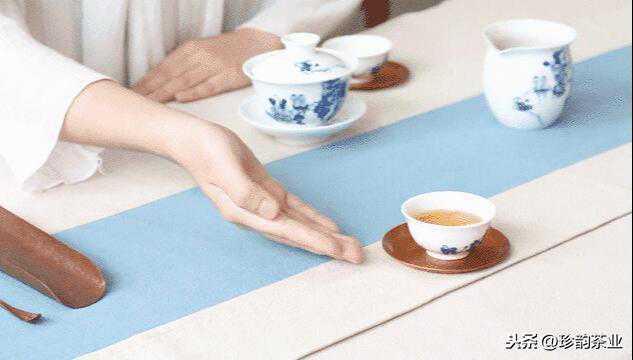 此外,在招待客人喝茶时,还有一种“伸掌礼”,是泡茶者示意对方需要用到的,表示“请”的意思;当伸掌礼用于主泡与助泡之间协同配合时,又表示“谢谢”。