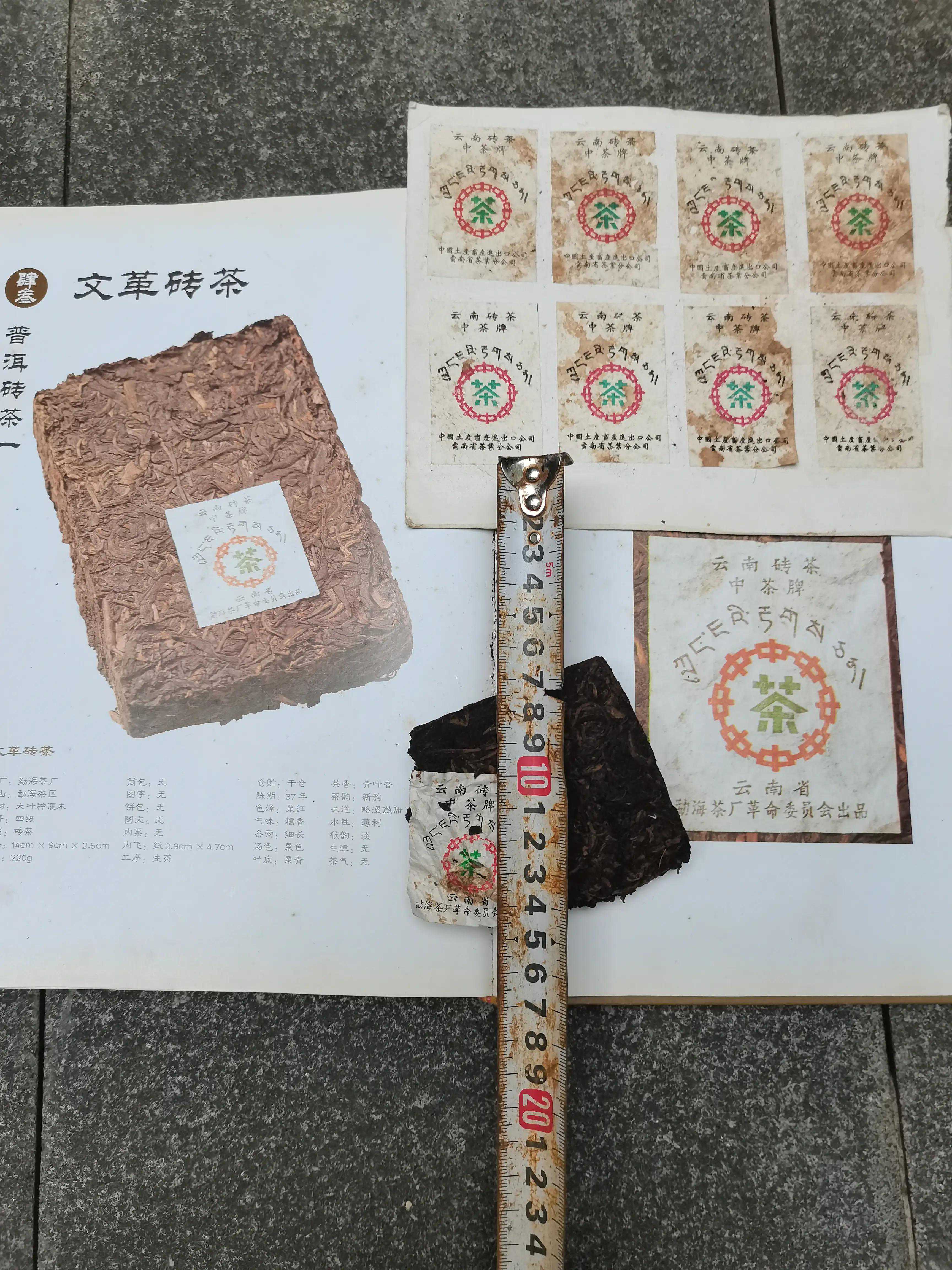 最后,在谈到市面上众多所谓的“文革砖”,专家们一脸鄙夷,异口同声说是伪命题,假的、杜撰的,勐海茶厂当年在文革期间根本没有生产过这样标有“云南省勐海茶厂革命委员会出品”字样的内飞,因为当时是计划经济,所有的产品生产都是由省公司统一制定的,这个现象直到76年文革结束四大厂才有各厂的产品标识和“唛号”。假如有革命委员会这样内飞那其他三大厂也应该都会有同样标识的产品生产过。余正才老书记推断(当时邓时海也曾经来找过他)2003年邓时海为出普洱茶书时找不到真正文革砖茶样品,找到了勐海80年代后期为纪念文革时期,生产的带有“勐海茶厂革命委员会出品”标识的内飞贴到一块老茶砖上,后人因为对这段历史并不熟知,并以此为文革砖的样本。但这个“美妙”的错误把真的75年实验文革砖的母本当成是假的,反而得以将真正的75文革砖茶母本完美保存下来了。所以当你遇到标有“文革砖”“革命委员会”“为人民服务”等字样的茶,一定要格外小心,因为当时作为国营茶厂之一的“勐海茶厂”所有的内飞标识及名称都是由当时省公司来命名的,因此这样的产品根本不存在,以后遇到它千万不能当真!
