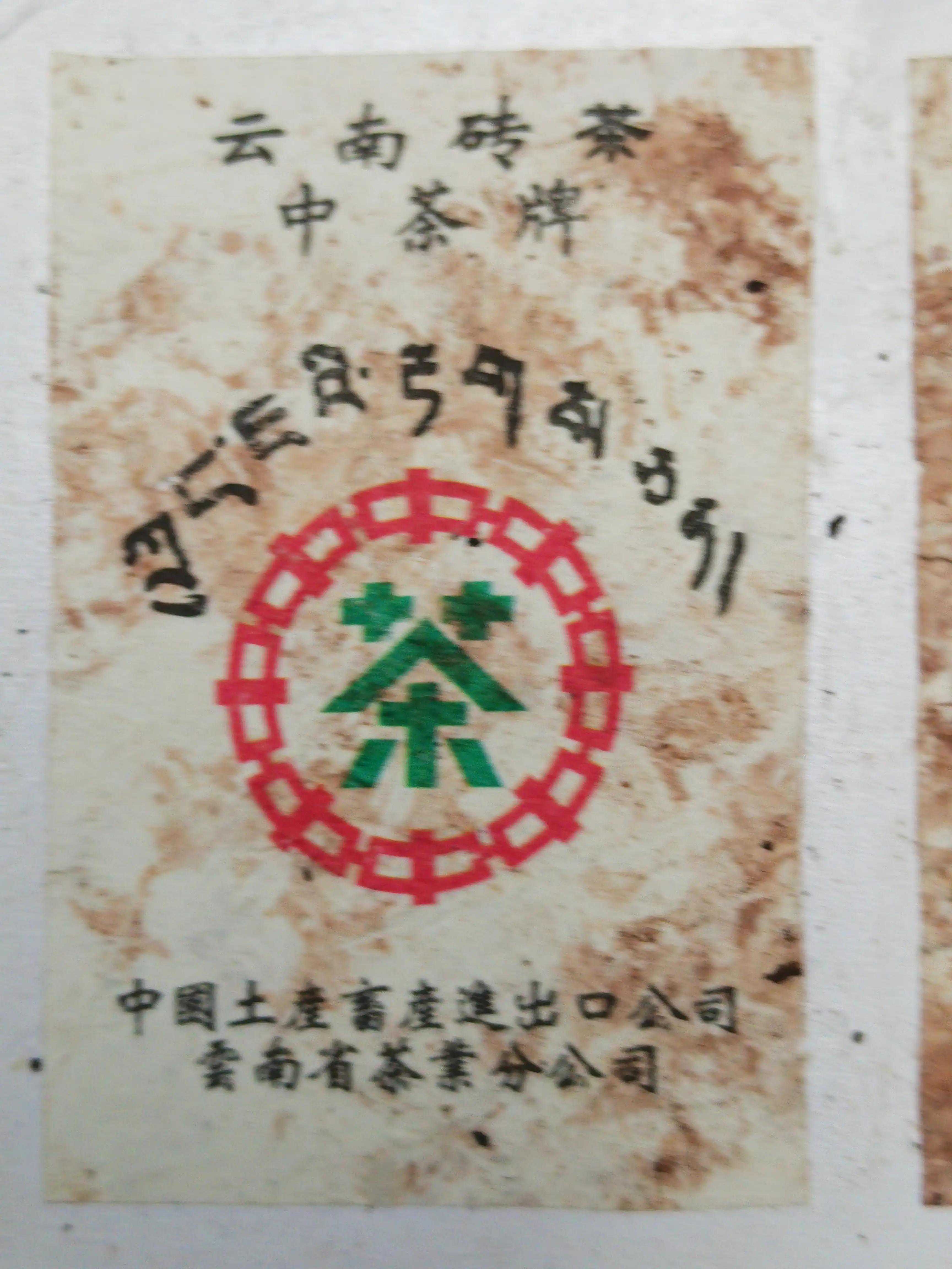 这批茶也就一直静静地待在勐海茶厂标准的储存仓里,天工之作,完成了它越陈越香的转化旅程。1996年,勐海茶厂以失败处理的产品,收回成本的价钱卖给了茶商)。这批轻发酵紧压砖形的75年老茶、精致美观,保存太完美了!茶气劲道化感十足。可以说是目前最老的纯干仓茶(比八八青还早十几年)。这批熟茶砖长14厘米,宽9厘米,高2厘米左右,也是文革期间省公司拿到自主出口权,嵌入标有“云南砖茶、中茶牌、中国土产畜产进出口公司云南省茶叶分公司”等标识内飞的勐海茶厂75年实验砖茶!