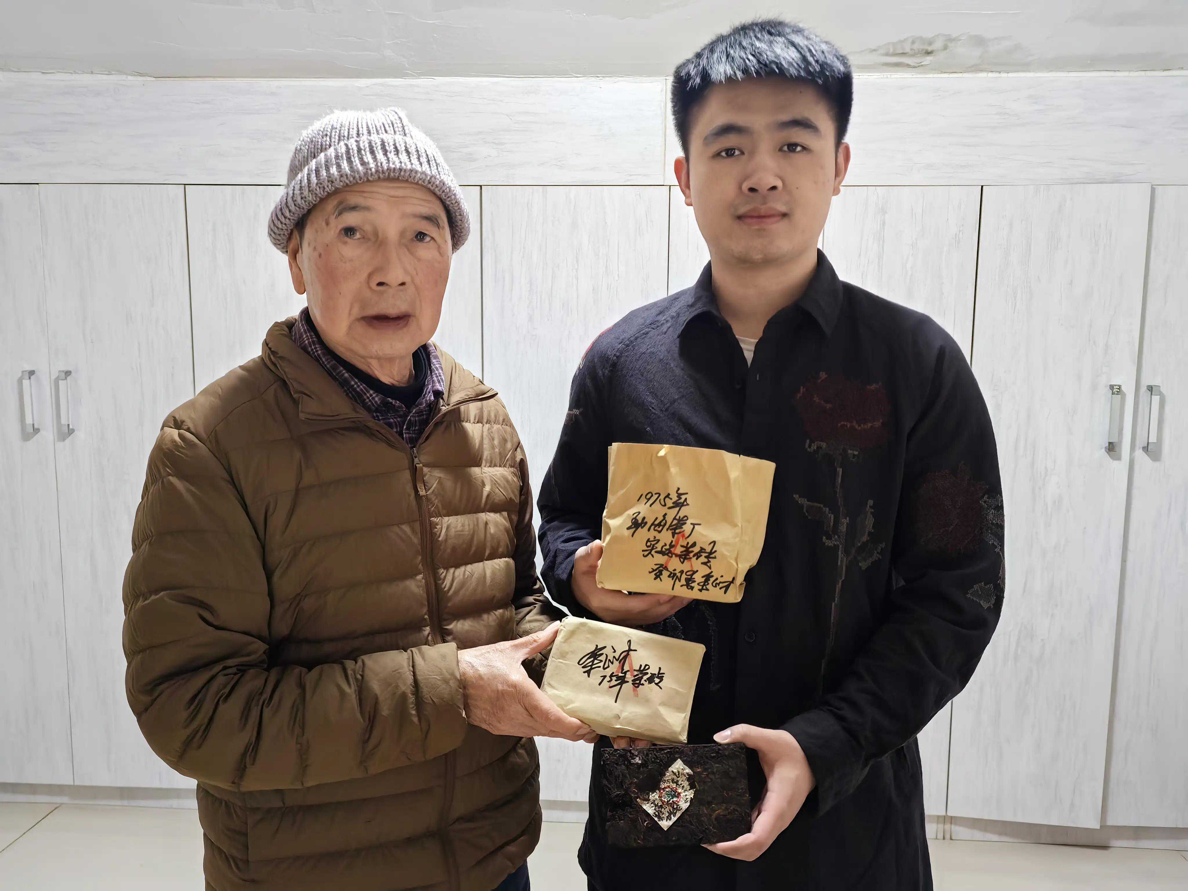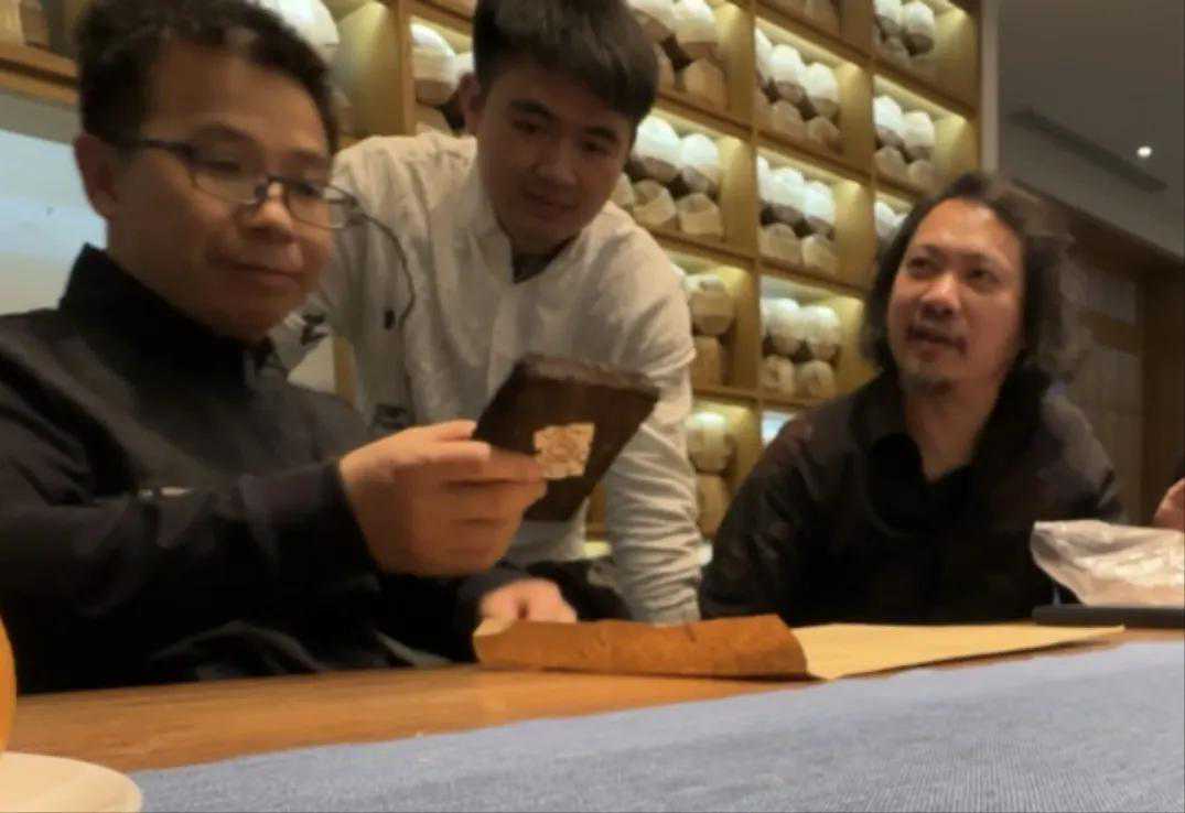 勐海茶厂现任掌门人曾新生厂长,2023年开春一起品签了2006年大益代表作/班章老熟茶,后又反复一起比较这款75年勐海茶厂实验老茶砖,品鉴3个钟后点赞合影留照。