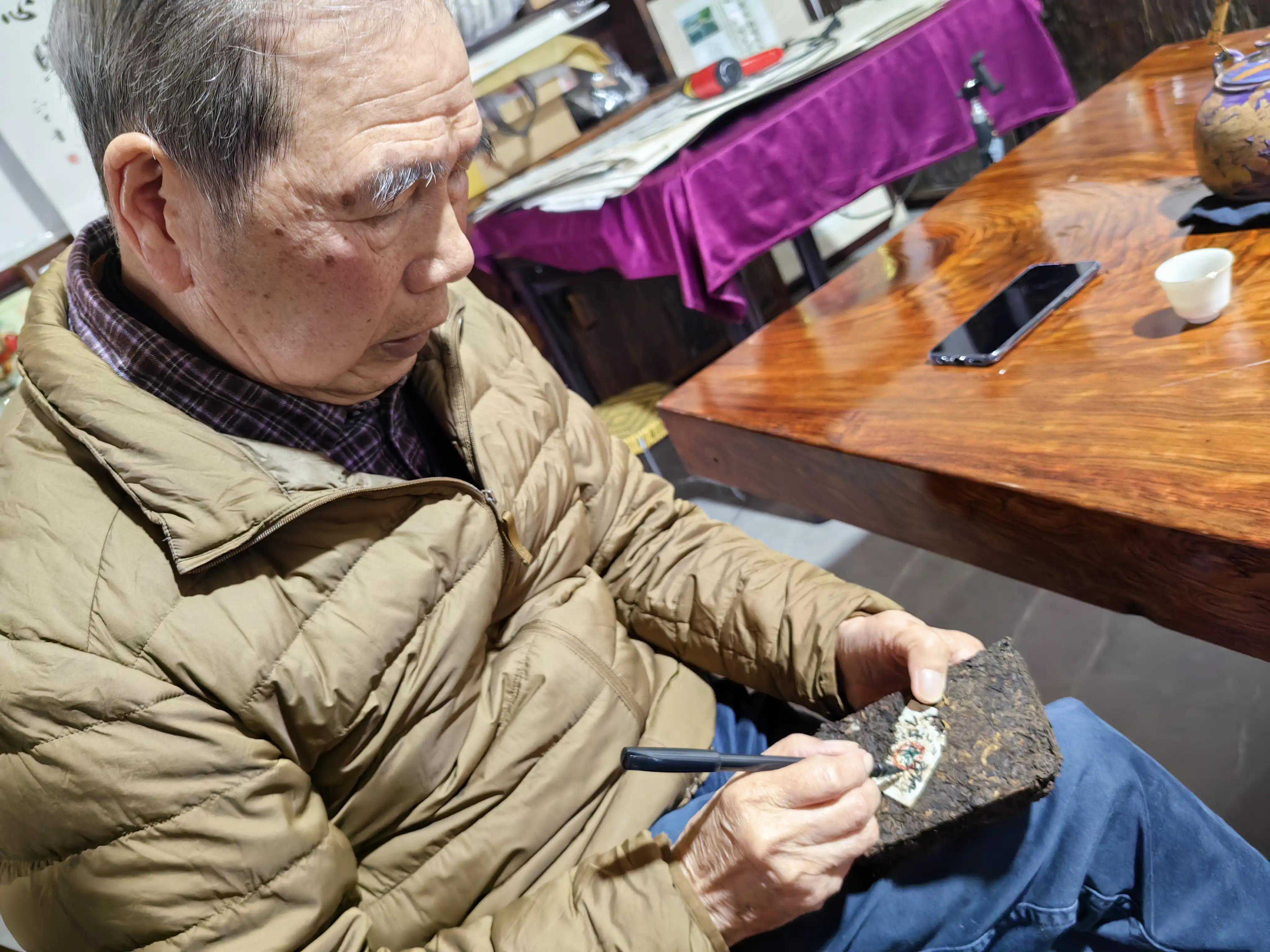 2023年春老书记在书房签字和再次回忆讲述了这款老茶砖的点点滴滴。