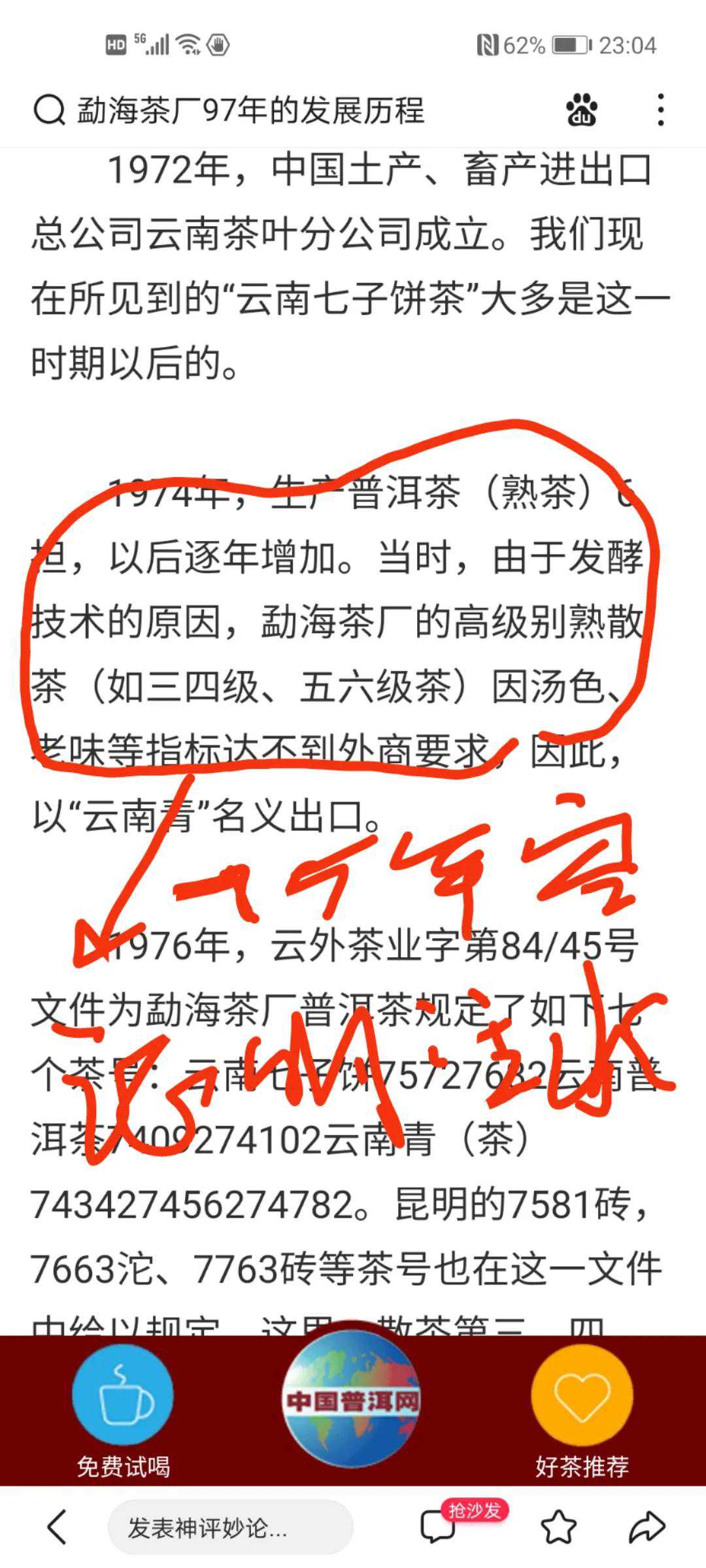 昆明茶厂前厂长吴启英笔记。我也同余正才老书记和现任勐海茶厂曾新生厂长考证过。