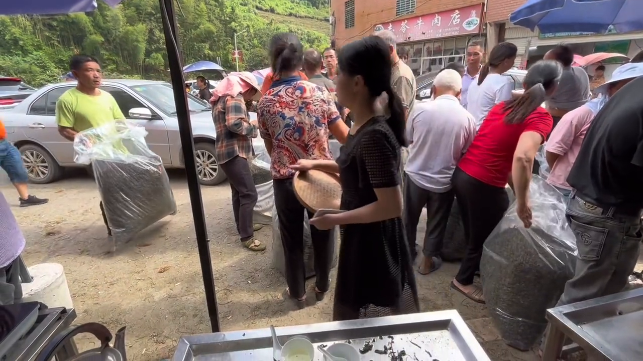 这是每年茶季感德茶叶街茶农与茶商的交易市场,小林销售的印象感德正味口粮茶都是在这条街上收的。春秋两季小林都会抽一两天在感德茶叶街收印象感德的毛茶,都是这样先看外观再闻香,可以了再开汤试,开汤试满意了再谈价,不满意就算了。