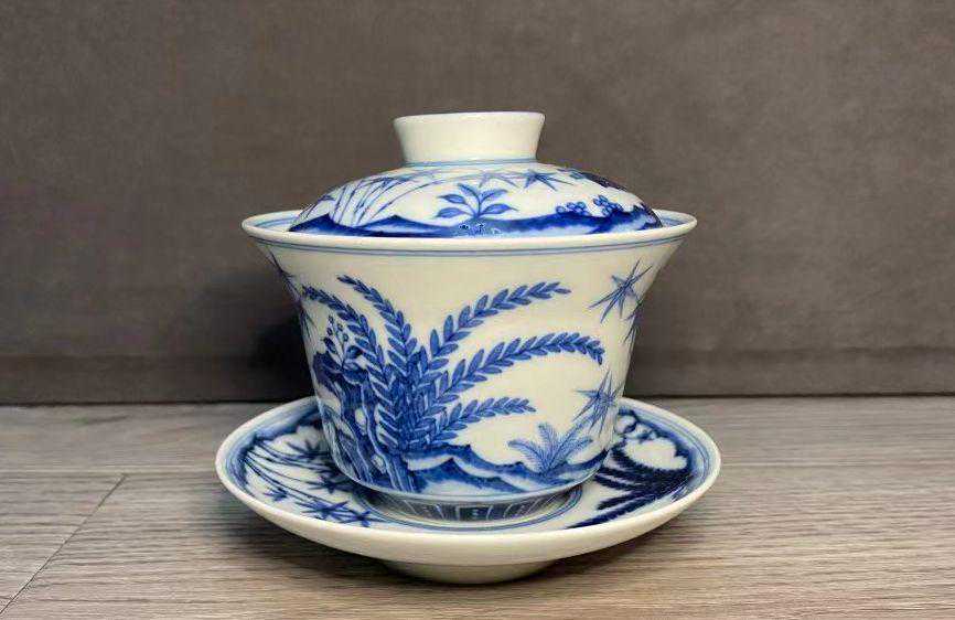 快雪时晴青花盖碗