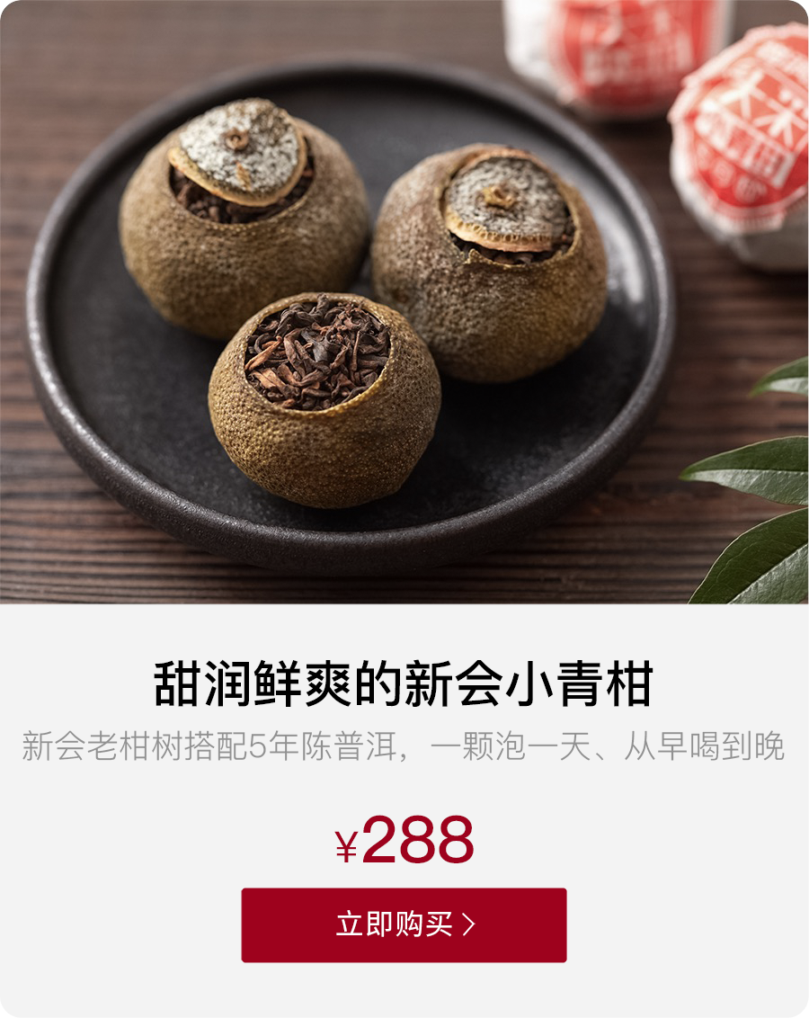 作为茶界的当红新宠,小青柑融合了清新的柑果香和醇厚的普洱之味。