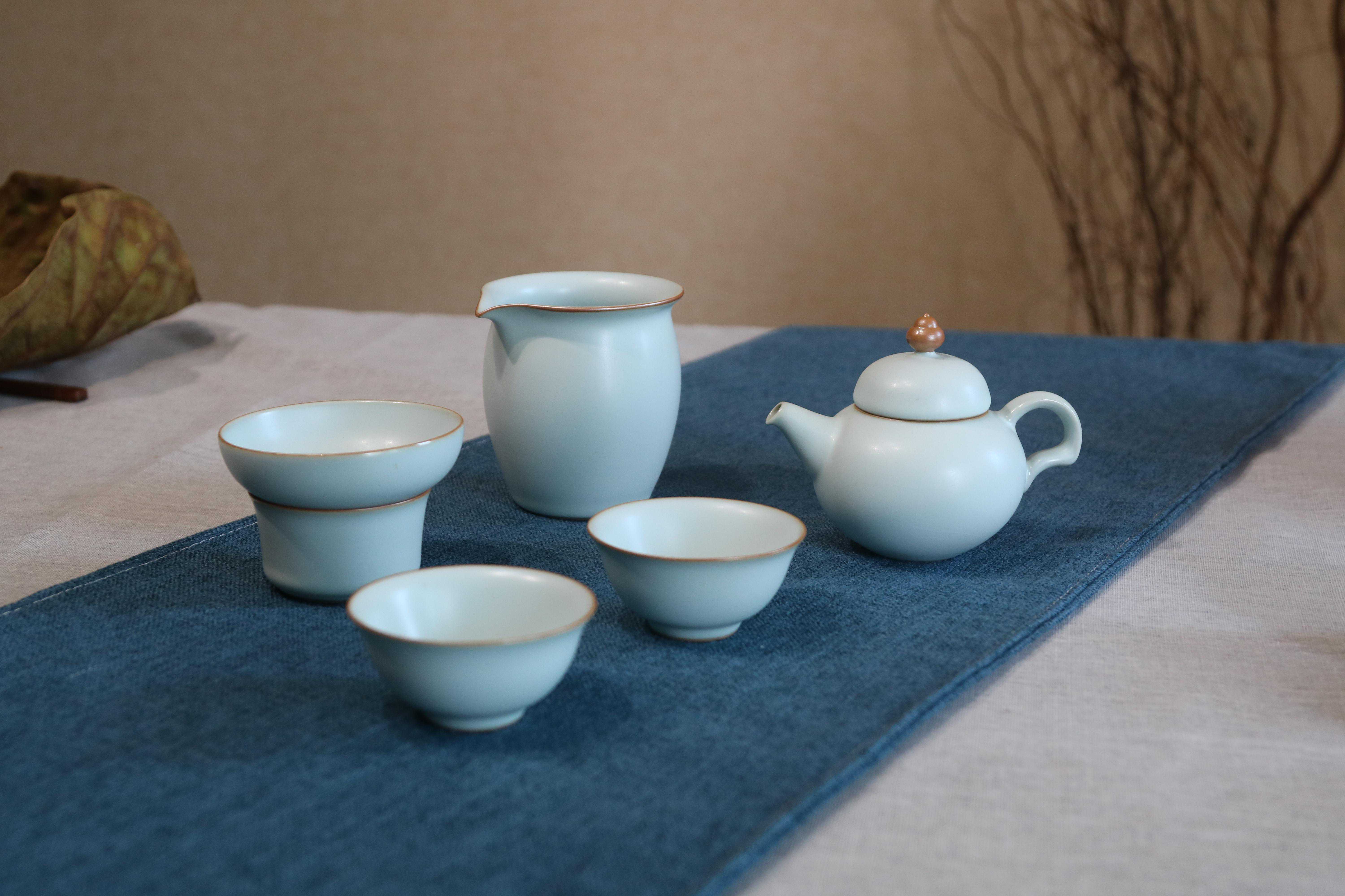 5,青澹汝窑天青参禅悟道壶一壶一海四杯
