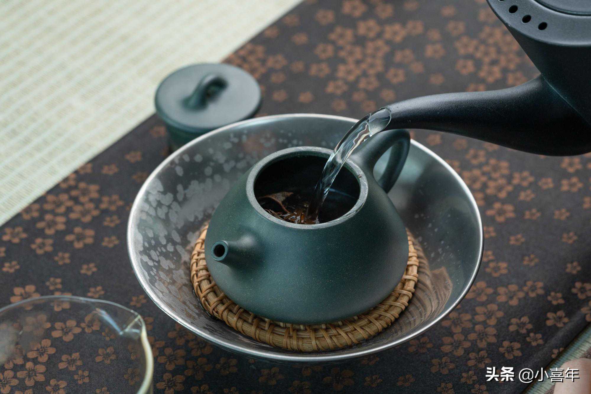 取干茶7g,用一个容量为130ml的民国绿石瓢壶冲泡。