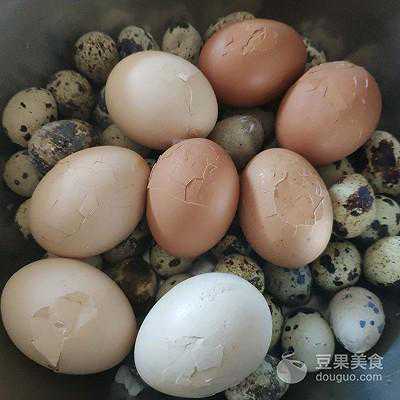 6、煮好的鸡蛋也捞出。敲碎方便入味儿。