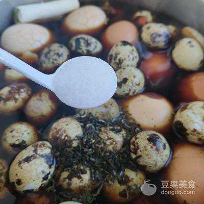 10、加香料和刚刚没过蛋的水。开锅后中火五分钟,之后调小火慢煮20分钟。