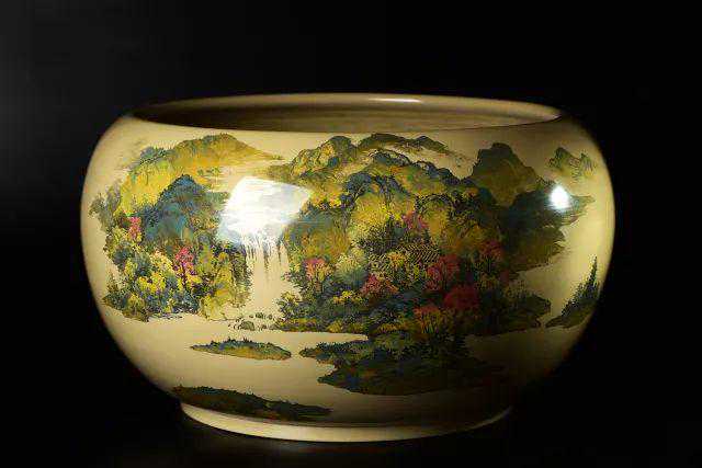 另一方面对于色彩的把握,可谓璀璨夺目,廖建忠大胆运用各种颜色进行填泥。青绿的山水,粉艳的花卉。赤橙黄绿青蓝紫,全都在他的填泥刀下粉墨登场。他巧妙的运用彩色绞色填泥技巧,让光影幻化,让远近的山石凸显,让四季轮回,让云雾缭绕,让画面变得生趣盎然。
