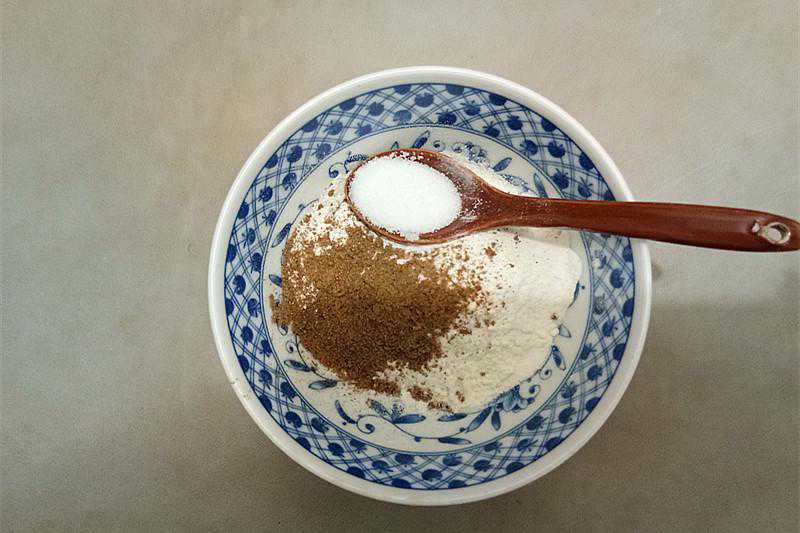 步骤3、做油酥,碗中加入50克面粉(中筋粉)1茶匙花椒粉、8克食盐混合均匀。手抓饼咸点更有味,盐要多给点。