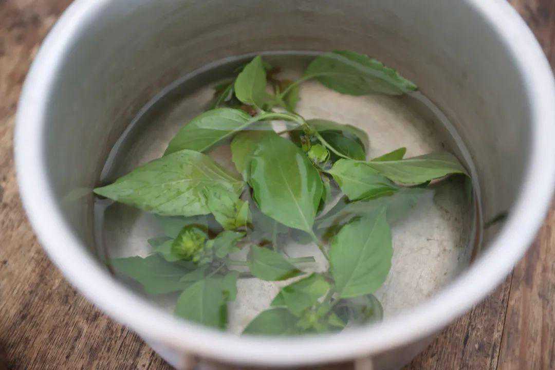 虽然没有大茶壶,但是找到了传说中的“béilái”,也能重拾儿时的味道。只需把采摘的罗勒叶洗净放入泡茶的容器里用热水泡开,待茶凉了就能喝了。一口下去清清凉凉,在这大热天里特别消暑。