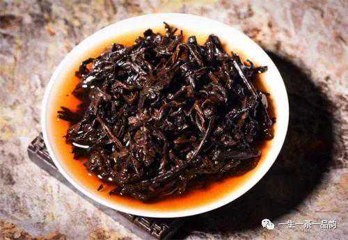 叶底不同熟茶经渥堆发酵后叶底为红棕色但不柔韧,重度发酵的叶底是黑褐色或黑色,硬且易碎。