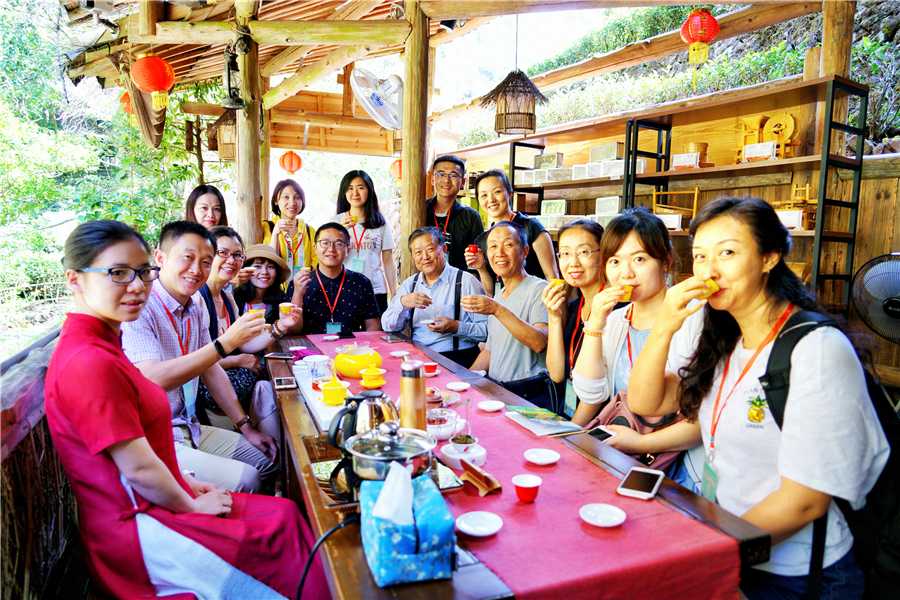 听当地人介绍大红袍母树的故事。大红袍母树作为古树名木列入世界自然与文化遗产,2006年母树上采的20克茶,已经被国家博物馆收藏。