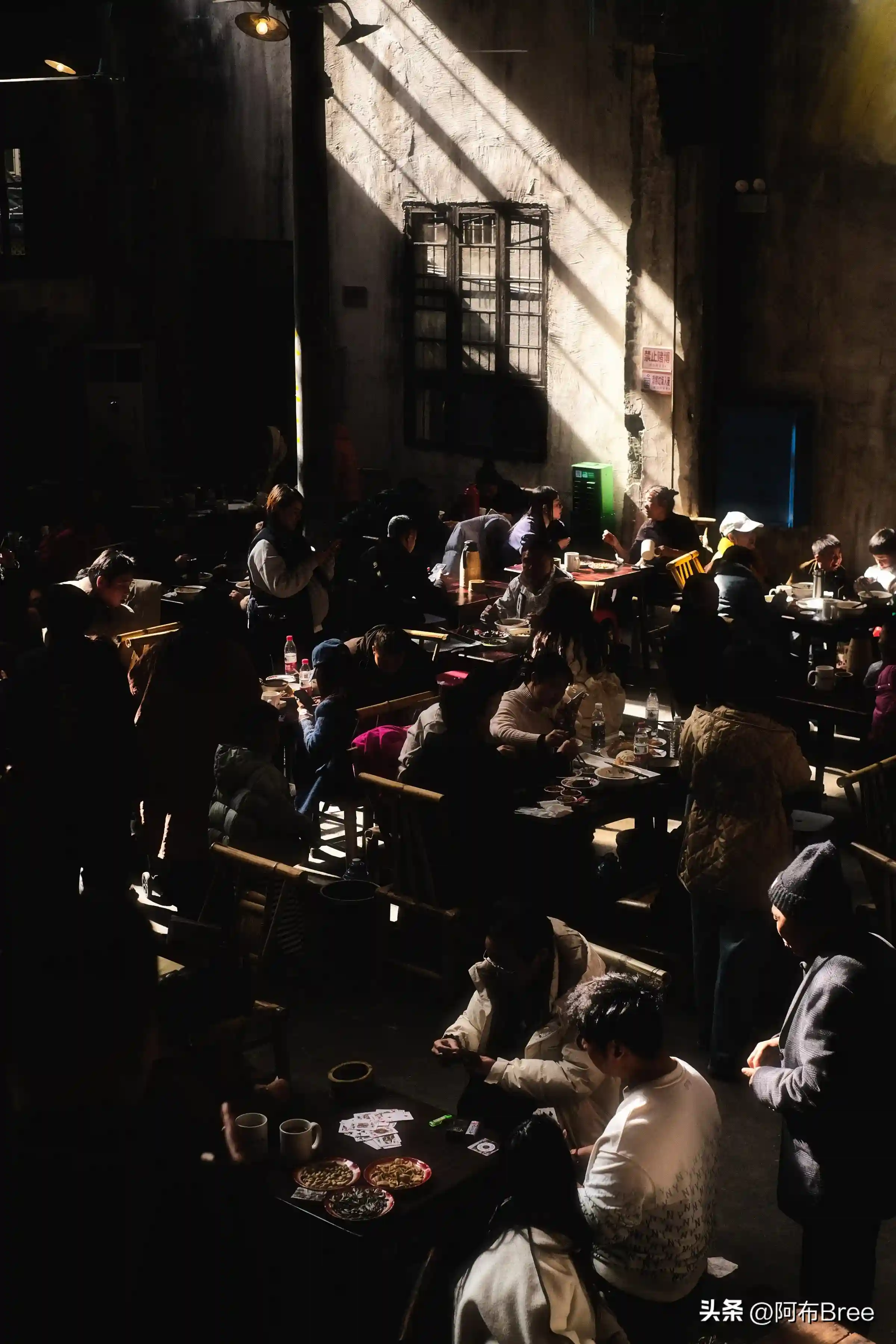 午后阳光透过雕花窗棂,洒在桌上、地上,光影斑驳✨。老茶客们谈天说地,或下棋对弈,偶尔还有小曲儿悠悠传来,一瞬间仿若时光倒流。