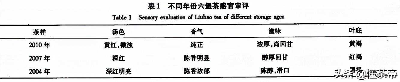 这一感官审评结果与梁燕妮对不同年份六堡茶的感官审评结果基本一致。