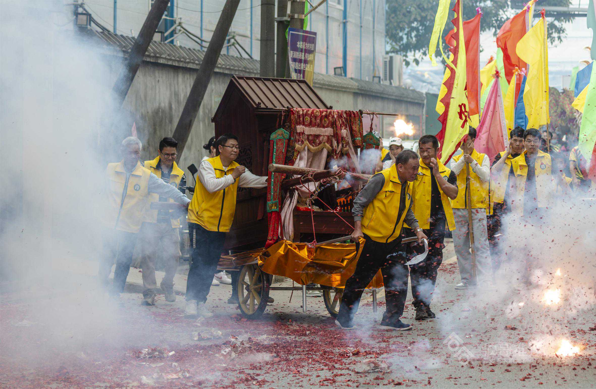 八位护神手大轿抬“关帝圣君”神像连同神龛