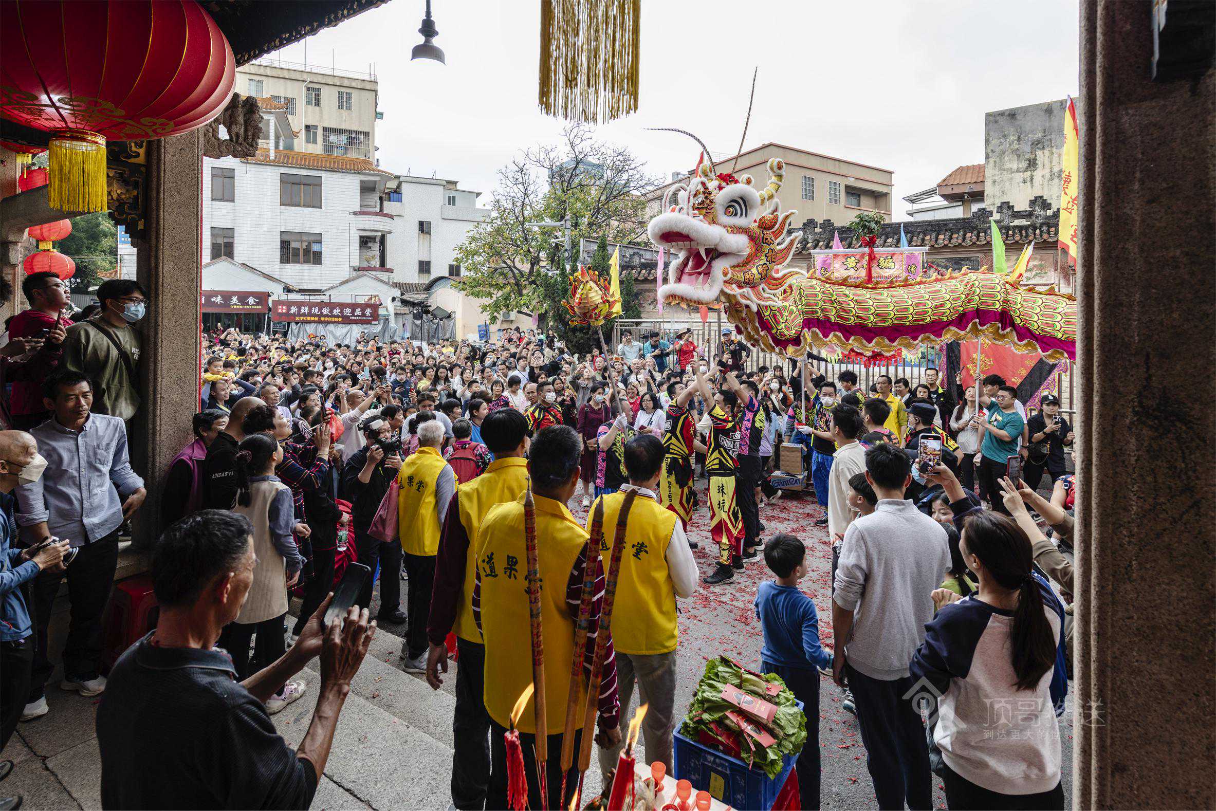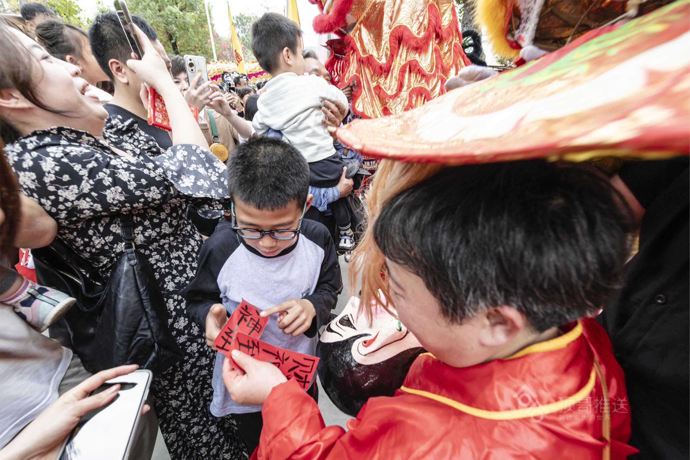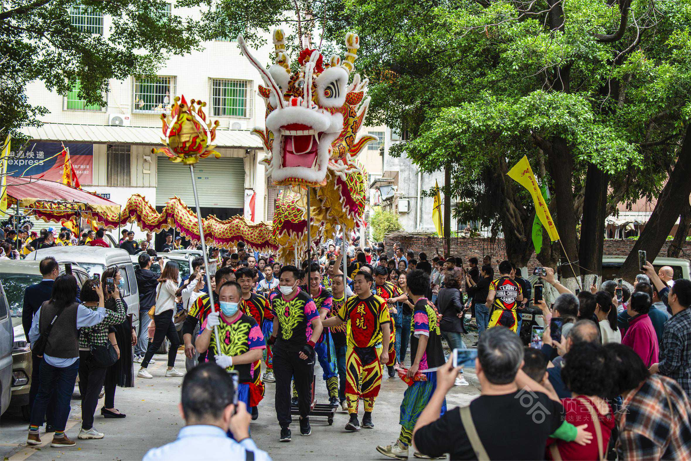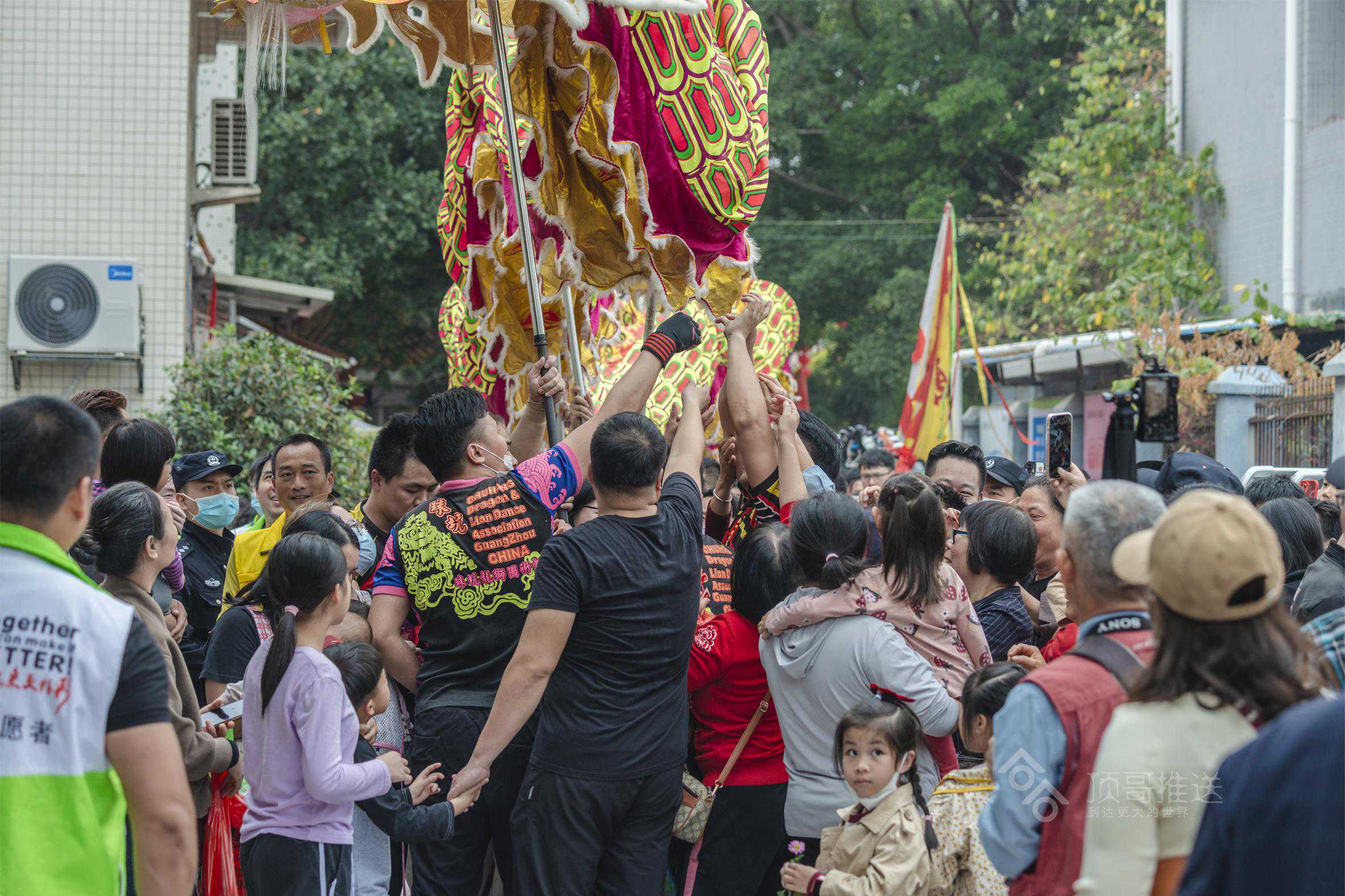 其中,给我印象最深的是“擝龙须”“采好意头”的吉祥民俗,在别的地方看舞龙,没有“擝龙须”的环节,在这,“擝龙须”一波比一波高潮,一路上,大人们跳得高高的,争先恐后把手伸向龙头擝龙须,还有大人高高把小孩举起擝龙须、摸龙身,祈福快高长大、健健康康!