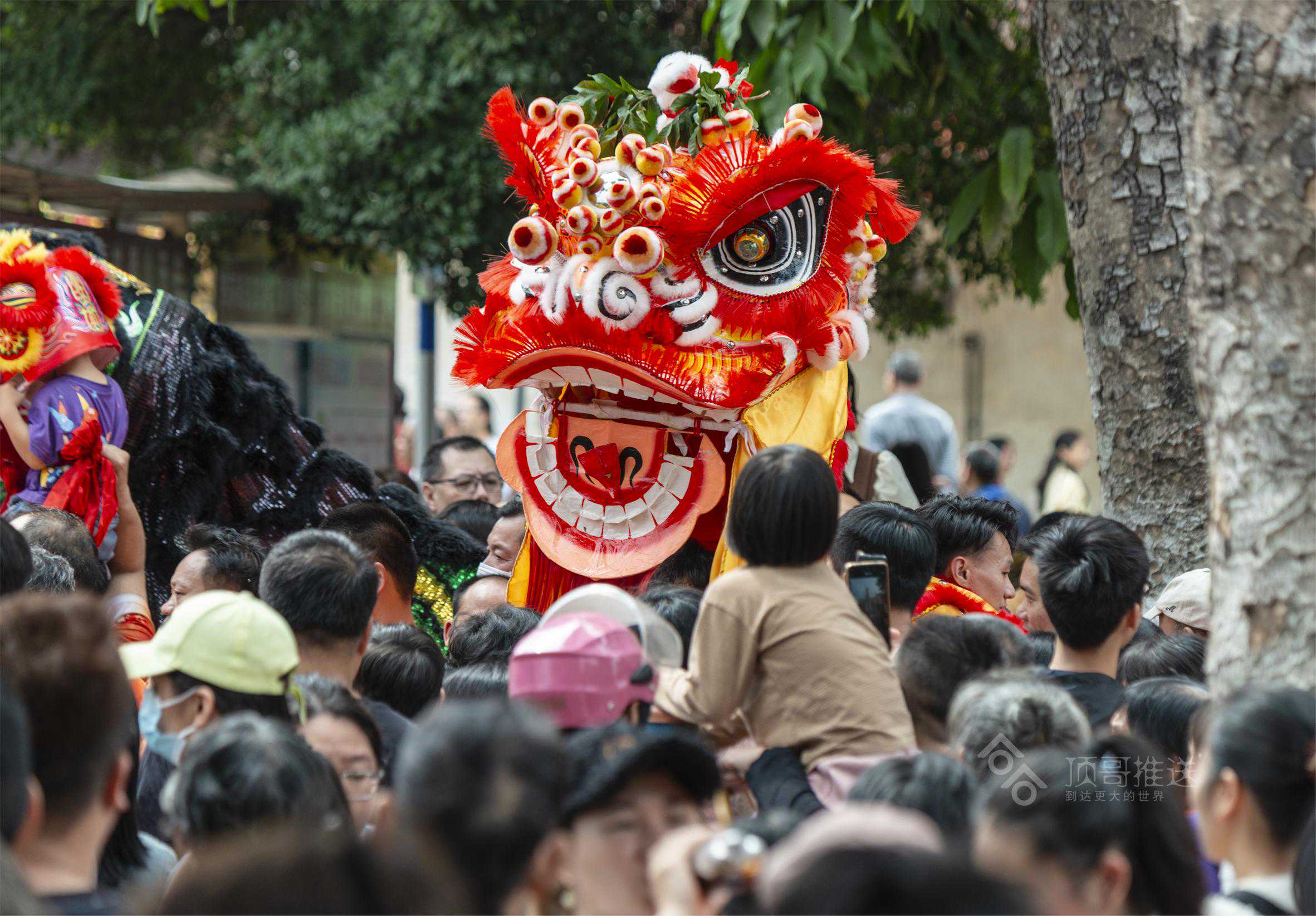 舞龙、舞狮未到,小孩们就急着采青,哈哈!跳的不够高哦!