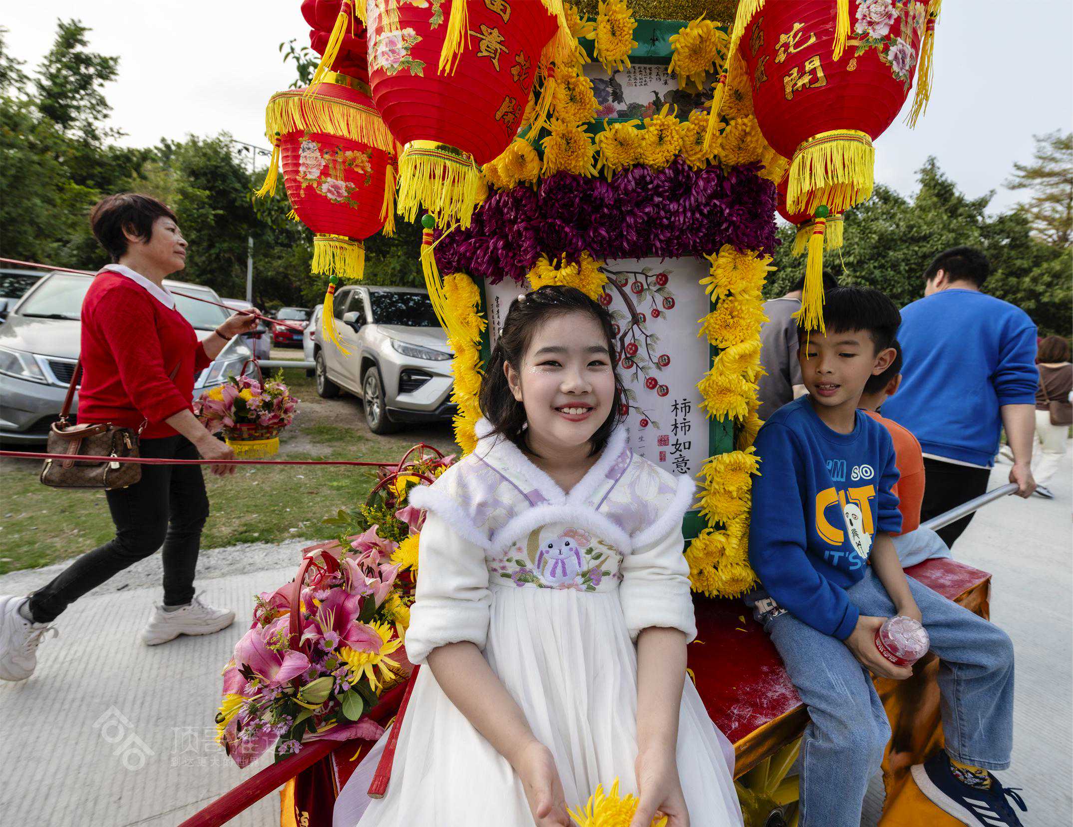 大人把小女孩抛起来擝龙须