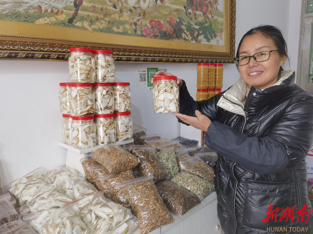 她经营一家纯手工小吃店,柚子皮、红薯糕、白辣椒皮等“盐旱茶”品种琳琅满目,货发到了新疆、内蒙古。