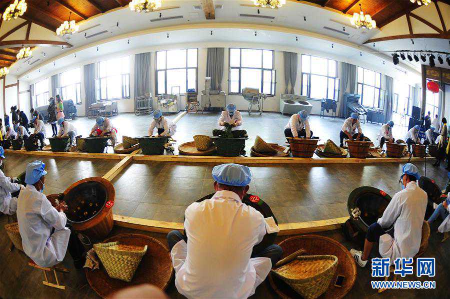 5月21日,数十名茶农在青岛市茶文化节上进行炒茶比赛。当日是首个“国际茶日”。新华社发(王海滨摄)