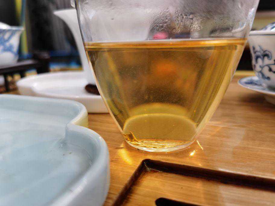 还有值得担忧的是,涩感一直沉而不显,个人觉得有使用一些降涩的新工艺,触茶底排除焖黄,有一定烘青和中等高温杀青的可能。这影响了此茶后期的高度。总体上说,这是一款比较有适口性的茶品,等待烟香转化完毕后,将更适合品饮。