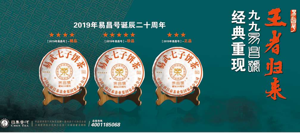2019年刚好是云南昌泰茶业集团“九九易昌号”诞辰二十周年,为了延续、传承这份经典,该公司工作人员跑遍易武大小茶山,穿梭于各村各寨,经过无数次对比、审评,终于得到优质原料,并按照当年“九九易昌号”的配方,在昌泰集团创始人陈世怀先生的带领下制作了这三款“九九易昌号”复刻版。按照原料等级分别为2019年易昌号珍品(五星)、2019年易昌号精品(四星)、2019年易昌号正品(三星)。