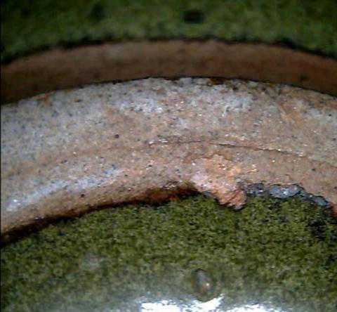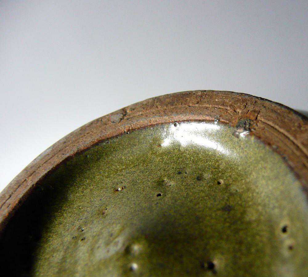 釉面可见窑裂及死亡气泡。