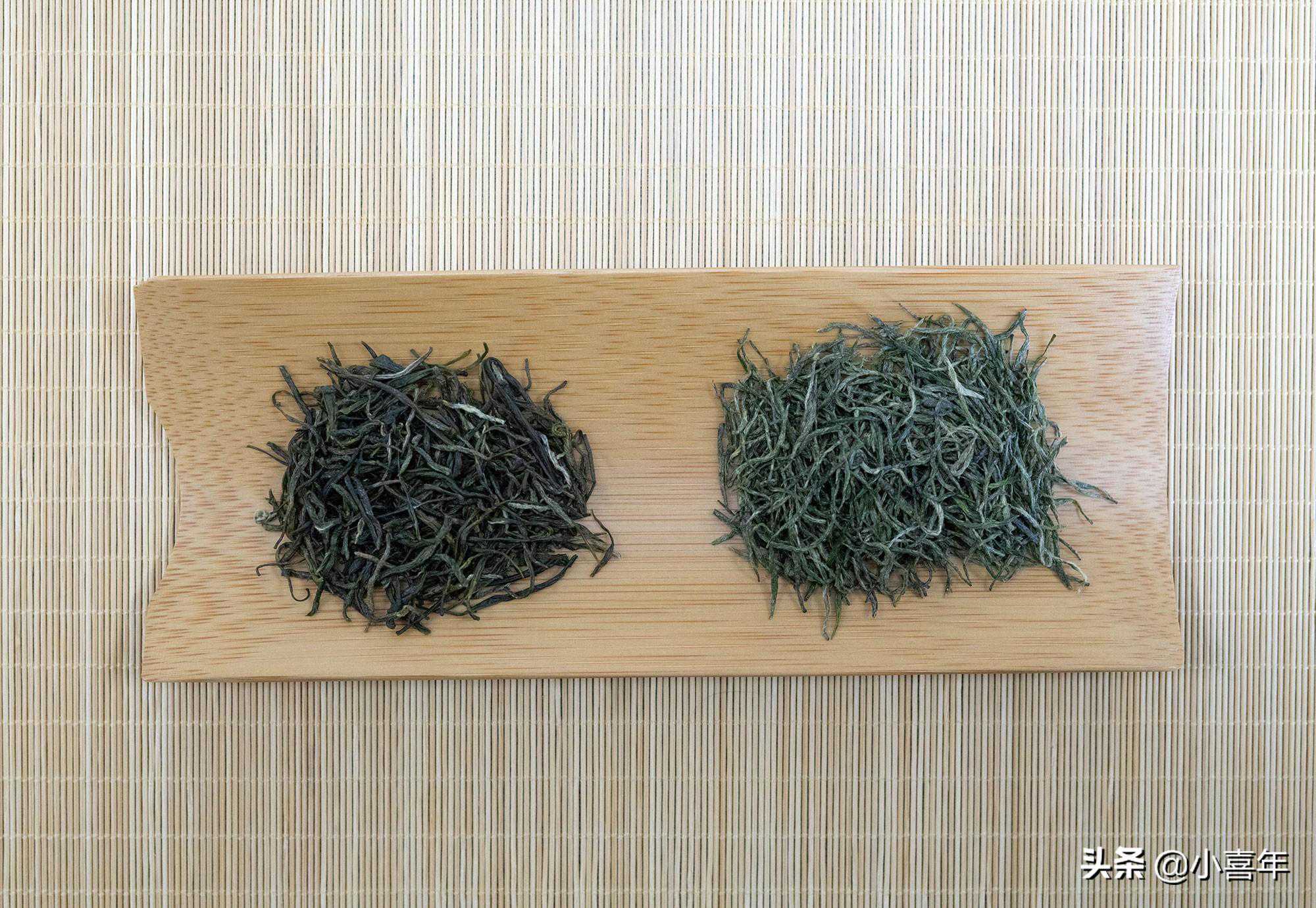 从两款信阳毛尖的图片也可以看出,春茶的条索圆直细紧,银绿隐翠,满披白毫,有锋苗;