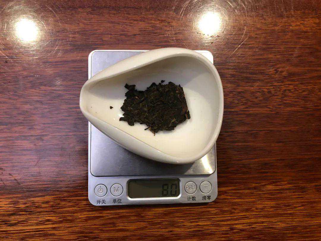 今天喝2009年易武正山,这是茶友的朋友送他的茶。这茶的边是方形的,从厚度上判断应该是个茶砖。老规矩,取茶8克,开始冲泡,这茶压得紧实度比较高,闷一下,把它泡松散一些再开始品尝。喝了第一泡,茶汤香、挂杯香都比较明显,但这种香给人的感觉不是老生茶的香,这个香有点奇怪,包括闻这茶,有一点前发酵茶的感觉。继续喝,喝完5泡以后再下结论。