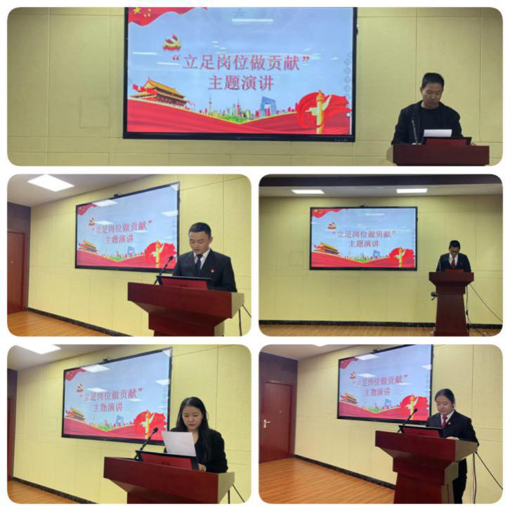 为牢牢把握主题教育“学思想、强党性、重实践、建新功”的总要求,主题党日活动中,党支部组织全体党员签订《党员承诺书》,号召全体党员从自身做起,从一点一滴做起,培养党员优良的工作作风,提升党员的责任担当意识。青年党员干警紧紧围绕“立足岗位做贡献”主题进行演讲,立足法院工作实际,结合自身感悟,用真挚的语言、鲜活的事例,抒发个人情感和心得体会。通过演讲展现新时代法院干警锐意进取、昂扬向上、踔厉奋发的精神风貌和坚定不移听党话、跟党走的决心。