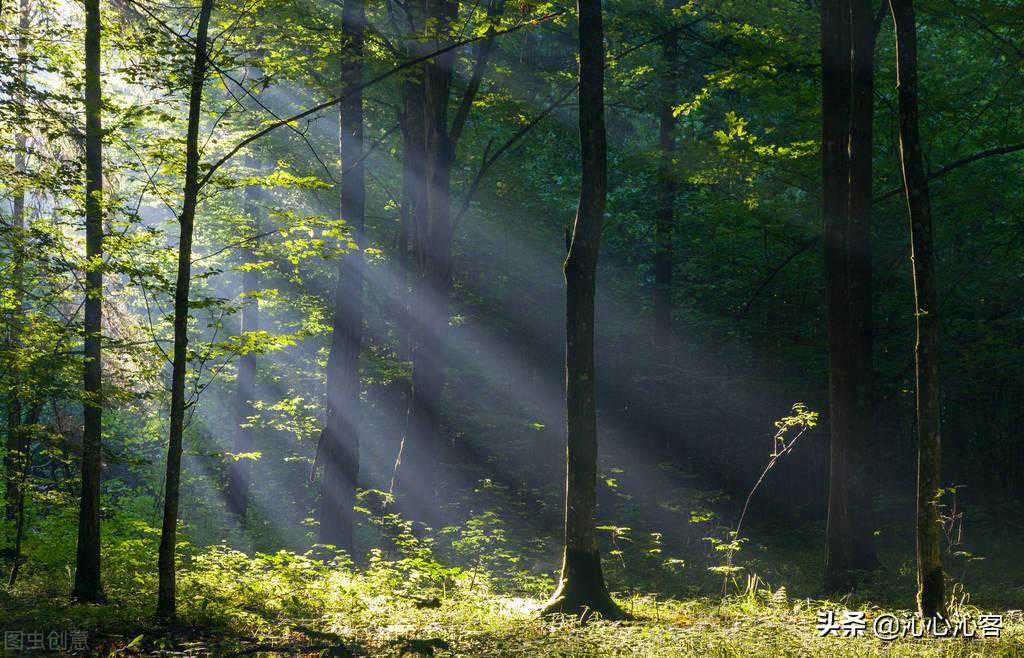 五六点的清晨,当周围都还是混沌的存在,渐渐地,树叶的空隙中,一道光穿透空气中的浮尘颗粒,一切都渐渐明朗了。