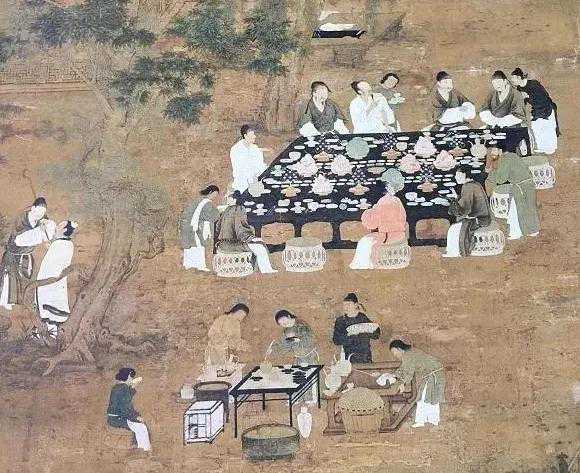 宫廷画师刘松年《茗园赌市图》、《撵茶图》所展示的不仅仅是点茶,而是印记着一种生活方式。《梦粱录》:“巷陌街坊,自有提茶瓶沿门点茶,或朔望日,如遇红白二事,点送邻里茶水,倩以往来传语”也予佐证,点茶成为社会化的民俗文化。