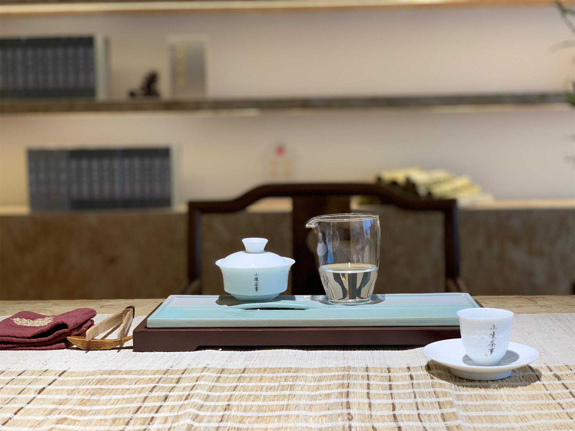 首先,是盖碗和公道杯的位置。