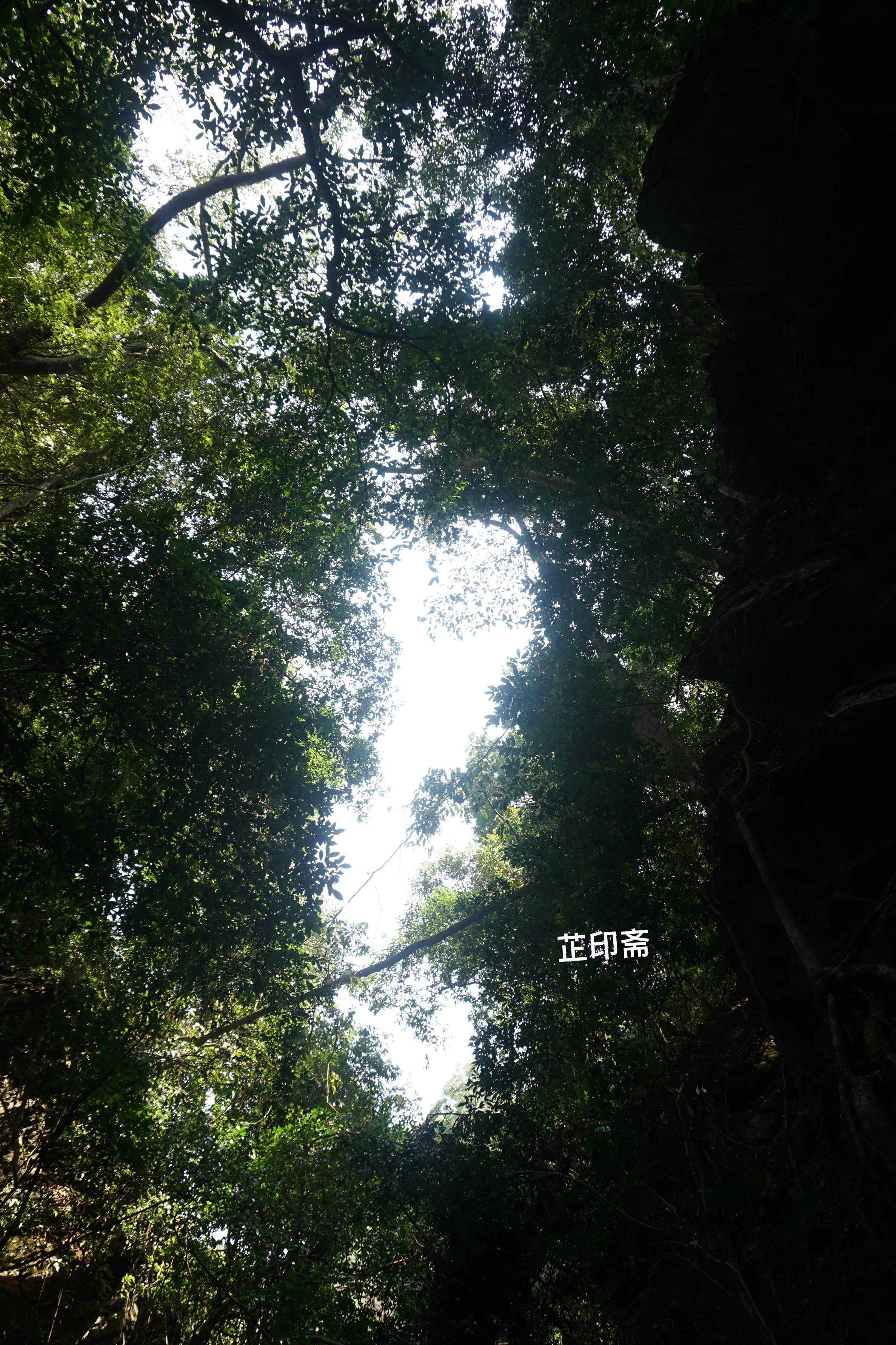 整个地势属于两山一峡谷,河流在山坳里一直流,流向远方,周边岩石峭壁上的大榕树,树围很大,笔挺挺的直冲天际,参天大树上有寄生的藤蔓,最下层就是各种蕨,各种芭蕉,各种野菜,各种野花。