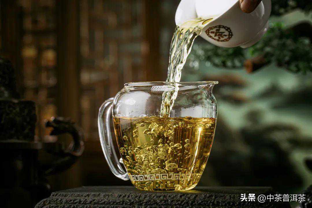 汤色黄亮,清澈油润,金光潋滟,晶莹剔透;