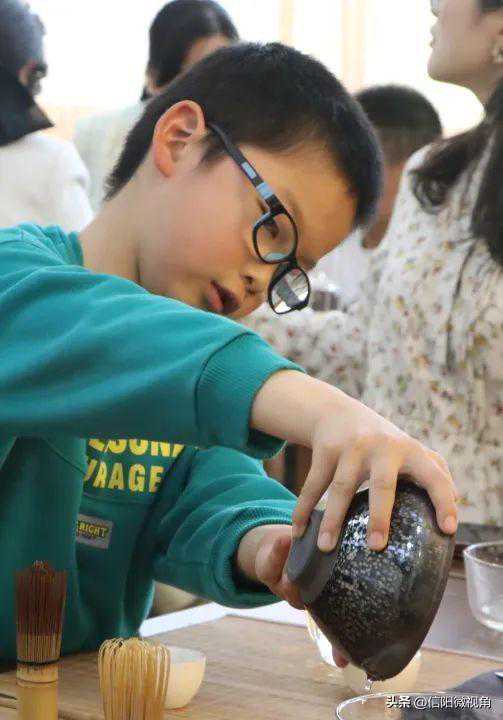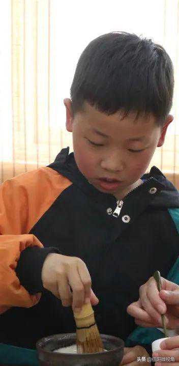 古人喝下沫饽,灵感便顺势迸发,便有了“细雨斜风作晓寒,淡烟疏柳媚晴滩,雪沫乳花浮午盏,蓼茸蒿笋试春盘,更有人间有味是清欢。”的古美诗句。矮纸斜行闲作草,晴窗细乳戏分茶,分茶富有艺术性和生活感,也称之为“茶百戏”,形式丰富多彩,内容有趣多变。小先生们通过点茶作画感受到宋代的文人雅士清雅的生活方式,体会茶道精神,丰富对茶文化的认识,感受茶文化的灵魂。