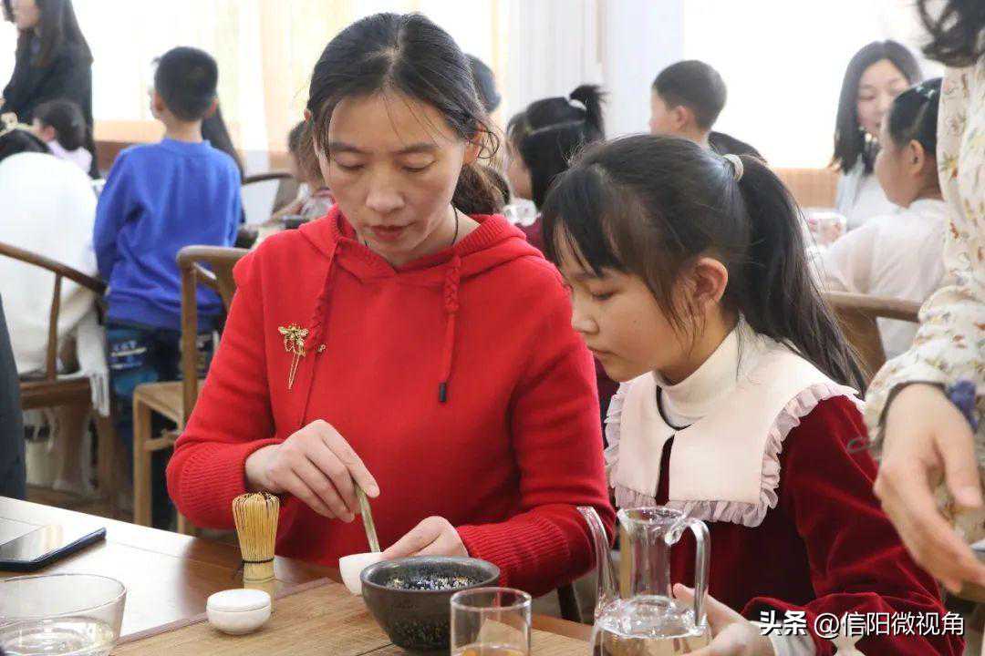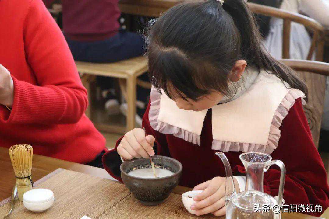宋代点茶形成于五代宋初,流行于两宋时期,鼎盛于宋徽宗时期。点茶不仅是传统技艺,还具有一定的社交意义,衍生出了“斗茶”“茶百戏”等表现形式,为文人雅士所推崇,极大丰富了宋代的思想文化生活。这个春天,羊山外国语小学东校区二(7)班七色花中队的小先生化身宋代小茶人,走进信阳农林学院茶学院,体验一场从身到心的听茶、点茶、赏茶、奉茶之旅。
