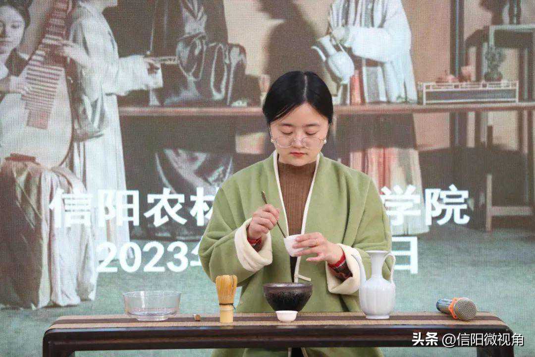 小先生们用双手把盏杯捧到齐眉高,带着敬意,赋双手以珍重,在这特殊的日子里,敬爸爸妈妈茶香一杯,寓三才之灵气,蕴五行之精华,透过捧杯敬茶,使父子母子的心贴的更紧,感情更亲近,气氛更融洽。信阳农林学院茶学院的未来大先生们也被现场的气氛所感染,纷纷表示点茶不仅具有社交意义,茶里还蕴藏着舐犊情深和反哺之情。