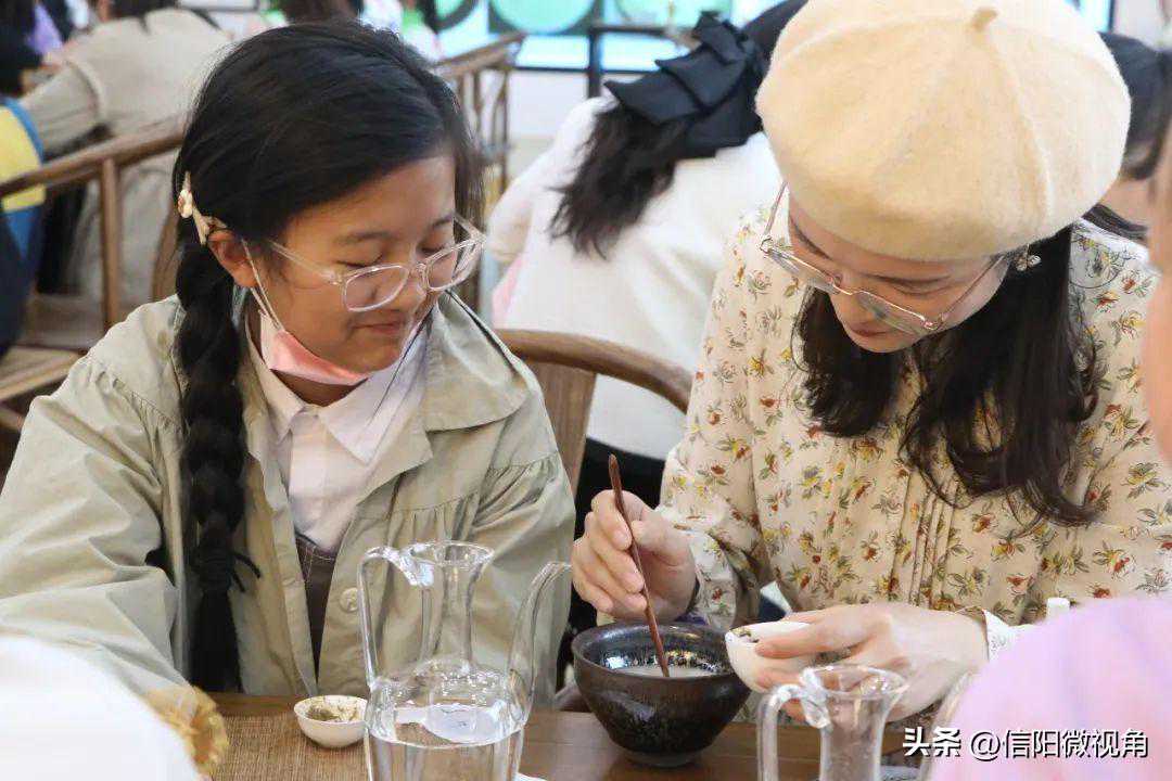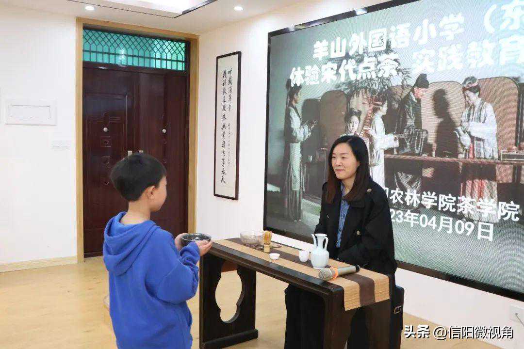 走进信阳农林学院茶学院茶文化教研室,聆听高级茶艺师王杉老师讲述千年茶史、辨别六大茶类,解锁点茶的技艺。小先生的思绪跟随着悠悠茶香,穿越时间和空间,飘向远方,仿佛置身于宋代茶集之间。