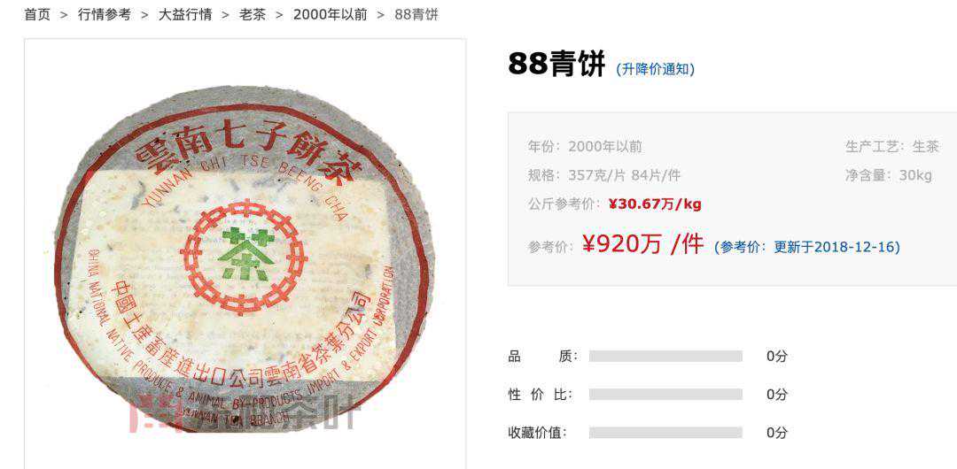 ▲88青饼行情图,来自东和茶叶网。