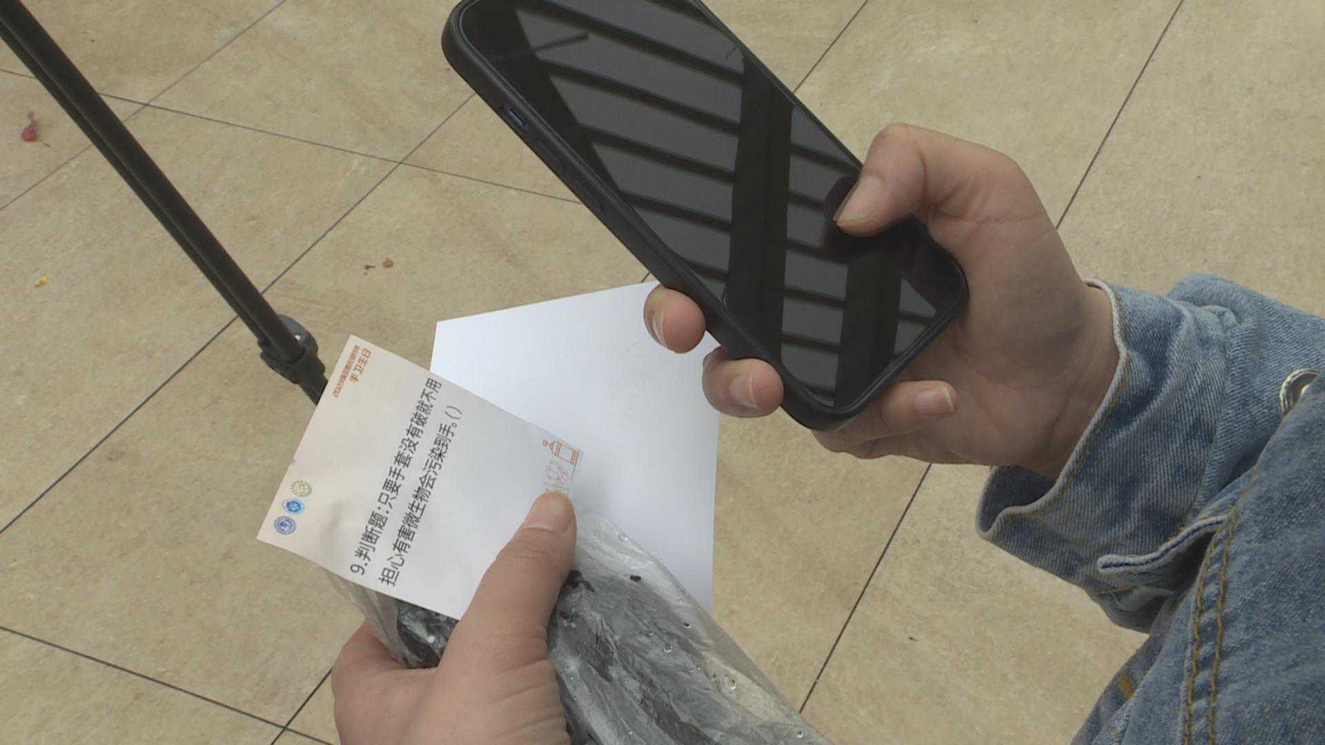 活动现场的有奖问答大大激发了大家学习的兴趣,抽到问题后如果答不上来,就可以扫描一旁的二维码打开题库进行学习。