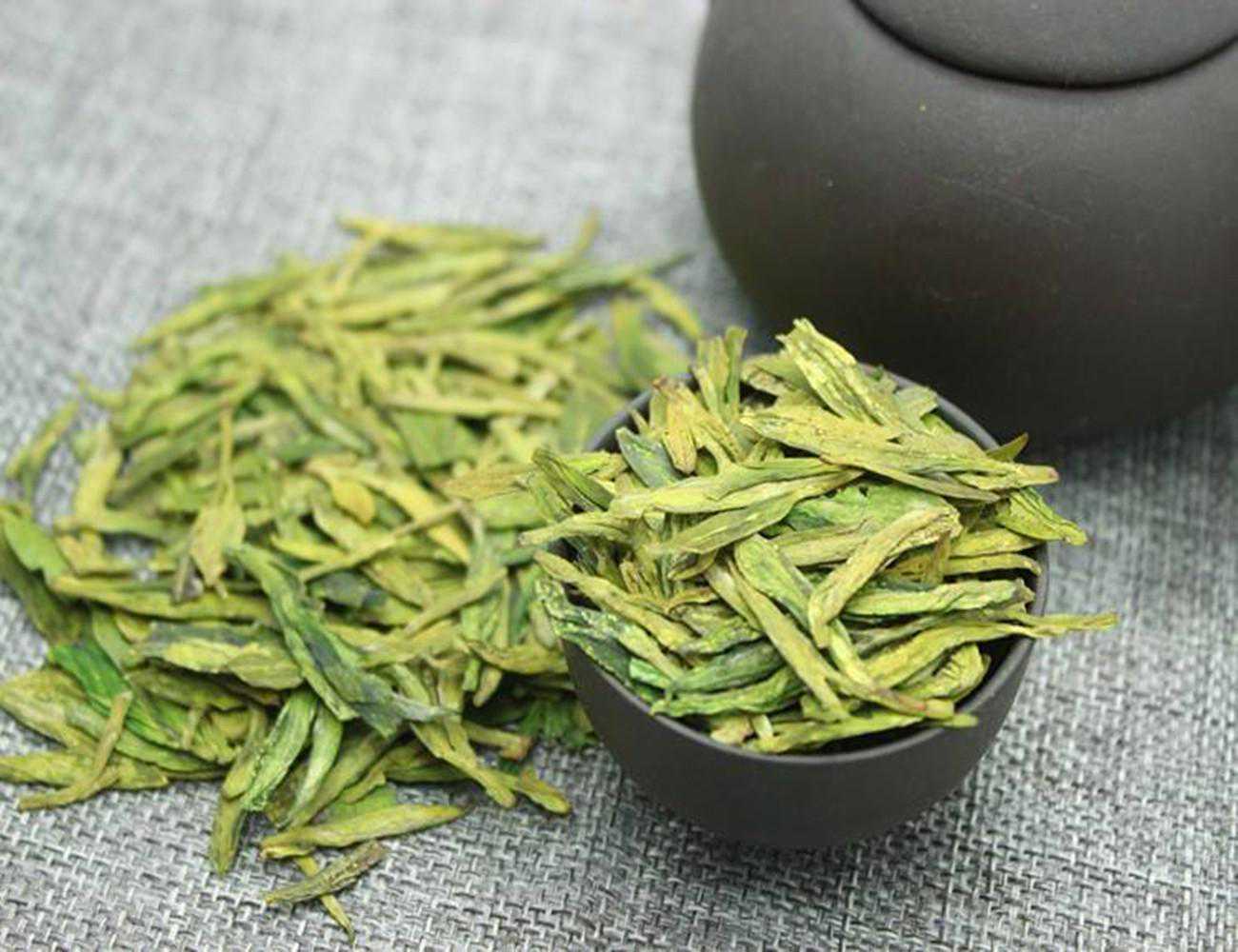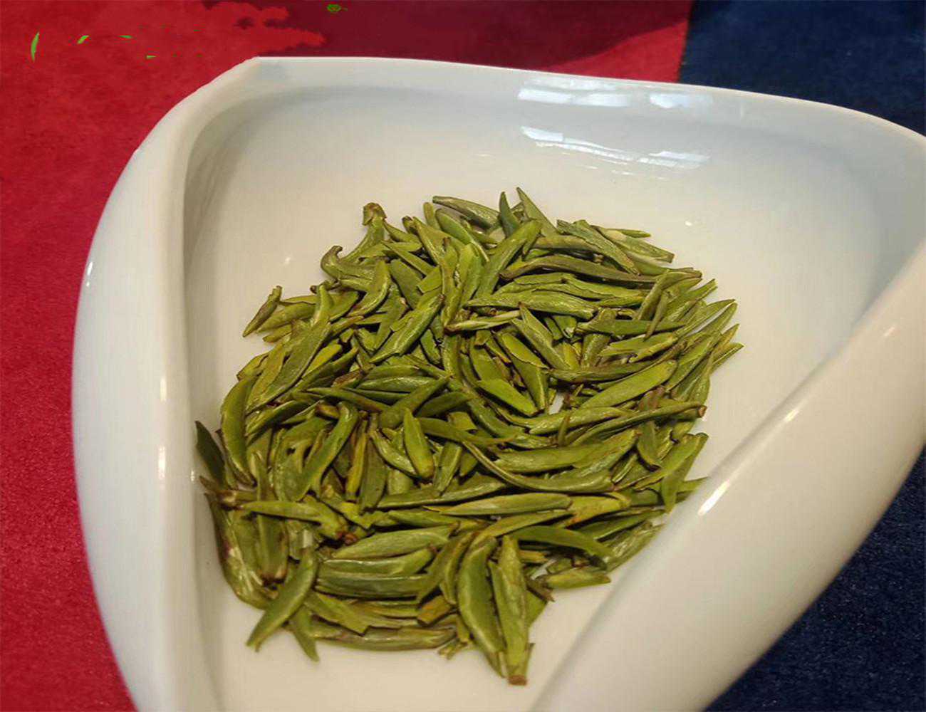 【西湖龙井】:条索扁平挺秀、芽长于叶、苗锋尖削、无毫、色泽嫩绿。